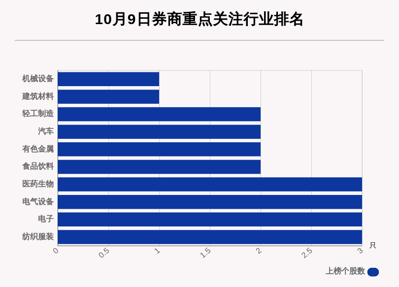 從券商對(duì)行業(yè)的關(guān)注度來看,券商關(guān)注個(gè)股數(shù)居前的行業(yè)分別是紡織服裝、電子、電氣設(shè)備。