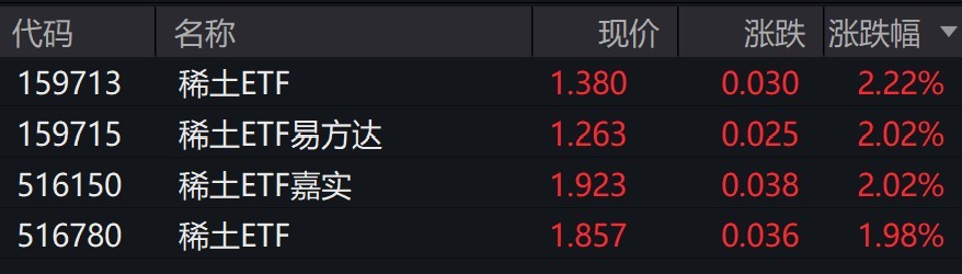 稀土概念股午后拉升,北方稀土、金風科技、中國鋁業(yè)漲超4%,中國稀土、盛和資源、格林美漲超2%。