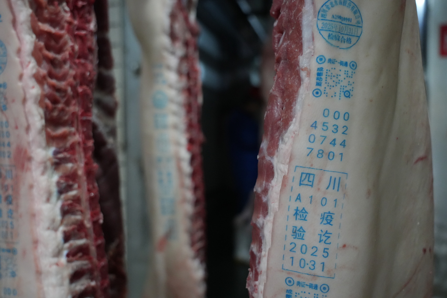 2022年,成都市啟動(dòng)“肉證一碼通”數(shù)字化監(jiān)管系統(tǒng)建設(shè),實(shí)現(xiàn)豬肉從“產(chǎn)地到餐桌”的全程追溯。2024年11月1日起,生豬產(chǎn)品“肉證一碼通”管理制度在全市23個(gè)區(qū)(市)縣全面施行。截至今年6月底,該系統(tǒng)已經(jīng)覆蓋成都35家屠宰場、所有批發(fā)市場以及學(xué)校食堂等重點(diǎn)用肉單位供應(yīng)渠道,豬肉產(chǎn)品質(zhì)量檢測合格率達(dá)到100%,未發(fā)現(xiàn)“問題豬”屠宰現(xiàn)象和假冒開證行為。