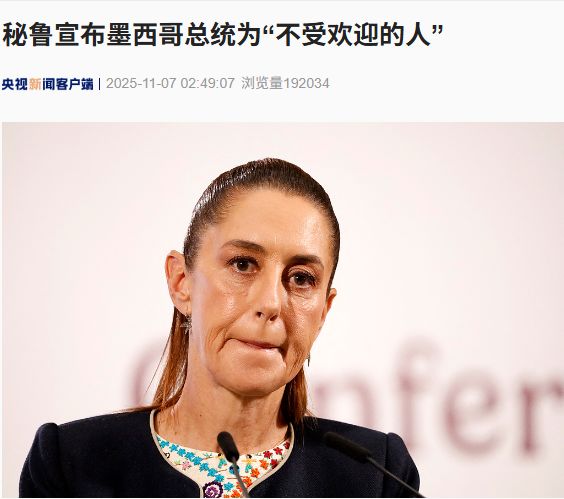 據(jù)央視新聞11月7日,當?shù)貢r間11月6日,秘魯國會通過決議,宣布墨西哥總統(tǒng)辛鮑姆為“不受歡迎人物”。國會認為,墨西哥政府向秘魯前總理貝特西·查韋斯提供政治庇護是對秘魯內(nèi)部事務的干涉。