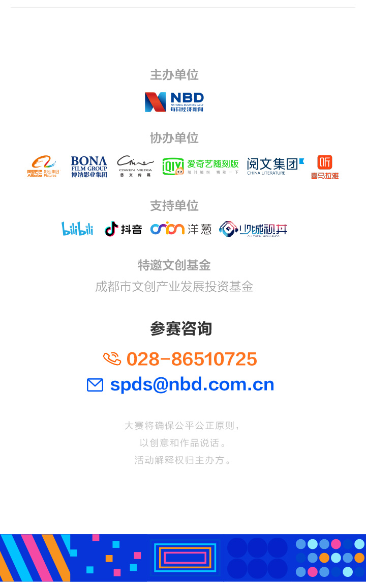 “第二屆影像天府·短視頻創(chuàng)攝大賽”于2020年4月正式啟動(dòng),邀約全球創(chuàng)攝愛(ài)好者續(xù)寫(xiě)“成都,一座來(lái)了就不想離開(kāi)的城市”篇章,征集優(yōu)質(zhì)影像作品。本次大賽設(shè)置最佳天府表達(dá)短視頻、最佳外文短視頻、最佳導(dǎo)演獎(jiǎng)、最佳創(chuàng)意獎(jiǎng)、最佳技術(shù)創(chuàng)新獎(jiǎng)、最佳攝影獎(jiǎng)六大專(zhuān)業(yè)。評(píng)委包括中國(guó)電影家協(xié)會(huì)副主席,上海電影家協(xié)會(huì)主席任仲倫;艾美獎(jiǎng)得主,美國(guó)著名影視導(dǎo)演、制片人Mark Zaslove;著名導(dǎo)演、編劇、制片人蔣欽民;洋蔥視頻聯(lián)合創(chuàng)始人聶陽(yáng)德......