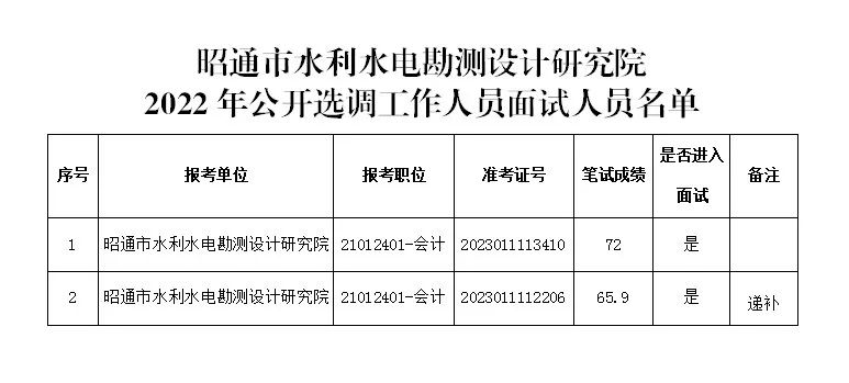 1.昭通市水利水電勘測(cè)設(shè)計(jì)研究院2022年公開(kāi)選調(diào)工作人員面試人員名單